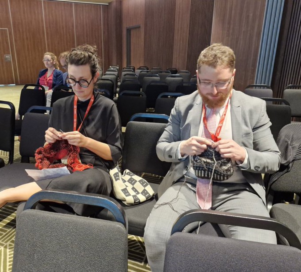 Knitting at the ESIL conference together with Roman Chuffart.